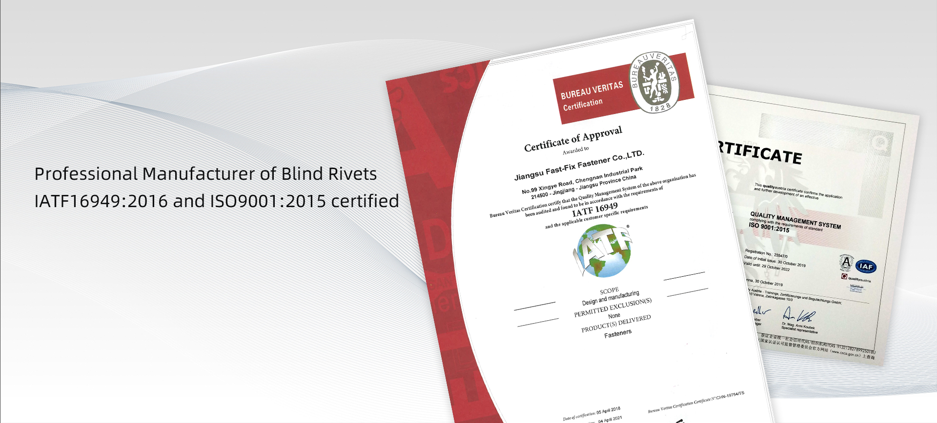 FASTFIX is committed to continuous improvement of the quality and service, by carrying out extensive functional and controlled testing of all products in every batch. From raw materials to final products, processes are in strict accordance with ISO9001 and IATF16949.